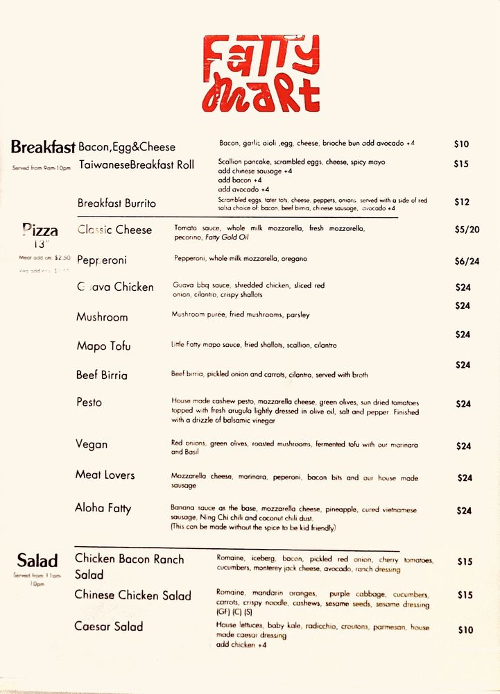 Fatty Mart Menu