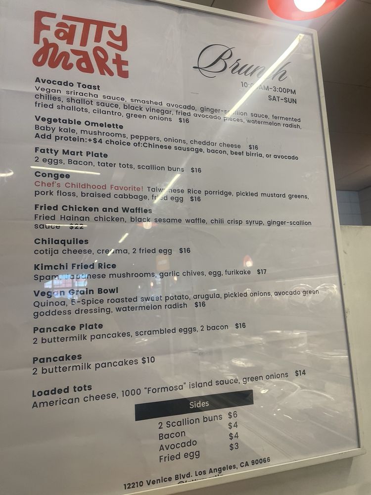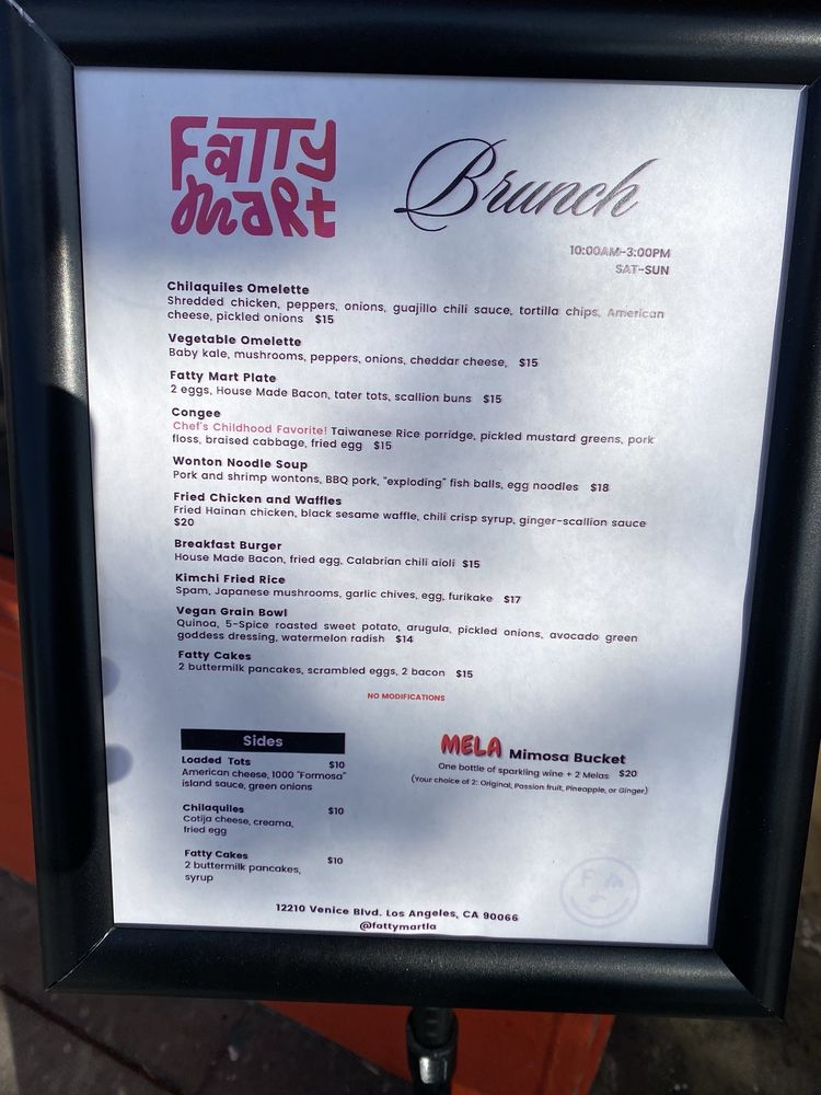 Introducing Fatty Mart, a deli and pizza spot located on Venice Blvd in Los Angeles, CA. This vibrant market offers delivery, takeout, and even reservations, making it a convenient choice for a variety of dining occasions. With wheelchair accessibility, Apple Pay acceptance, and free Wi-Fi, Fatty Mart truly caters to the modern customer. Customers rave about the delicious congee, flavorful pies, and gourmet snacks available. The friendly staff, cozy atmosphere, and diverse menu options make Fatty Mart a must-visit destination. Whether you're grabbing a quick bite or enjoying a leisurely meal with friends, Fatty Mart's eclectic offerings and excellent service are sure to leave a lasting impression.